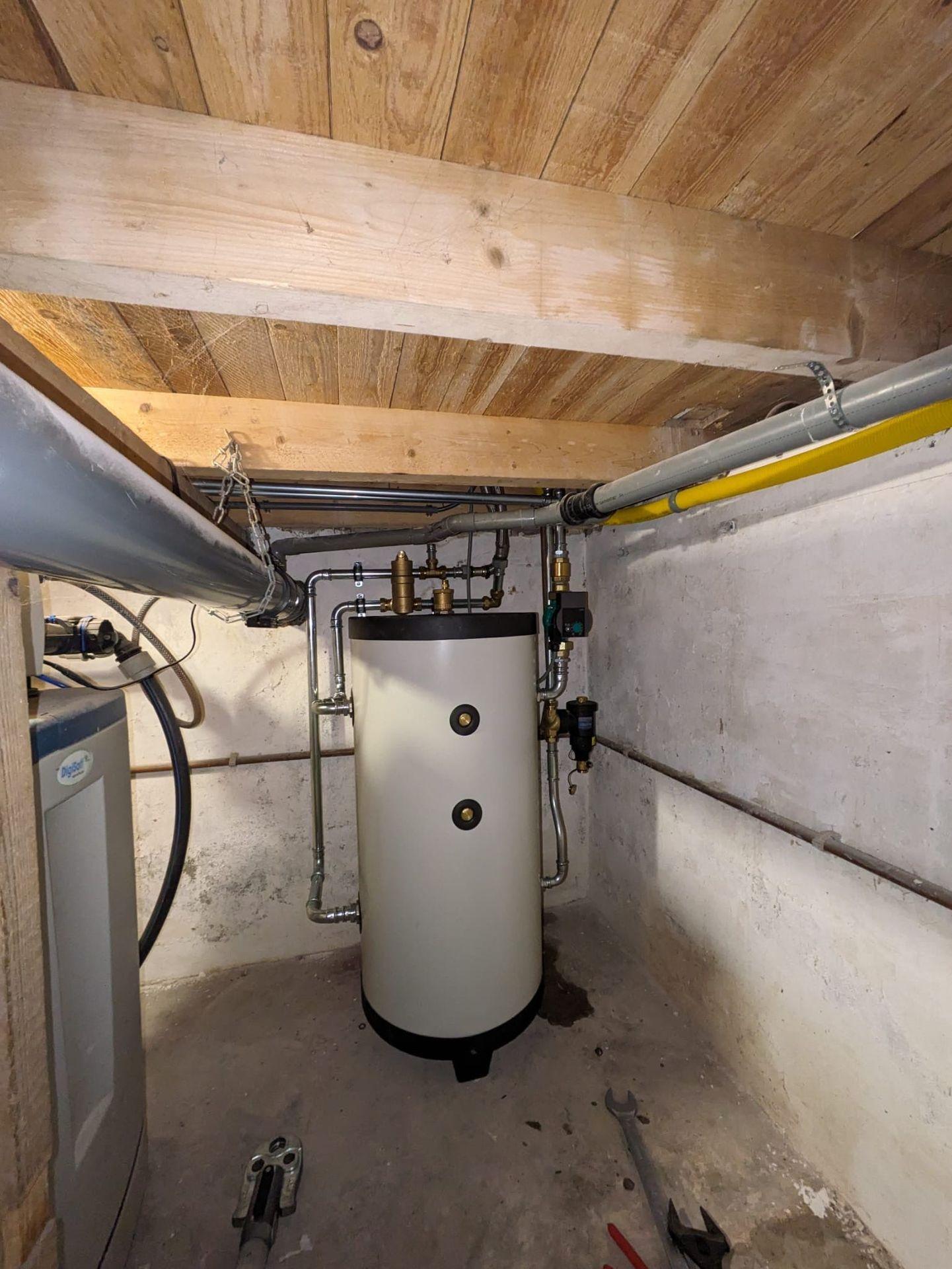We leggen de leidingen naar de cv-ketel aan en trekken de voedingskabel naar de groepenkast en warmtepomp door.